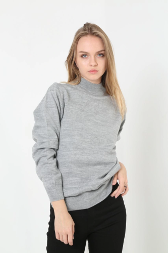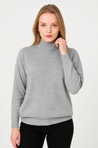 Yarım Boğaz Triko Kazak yumuşak dokulu Pamuklu ince Dokuma uzun kollu Rahat Regular kalıp Gri