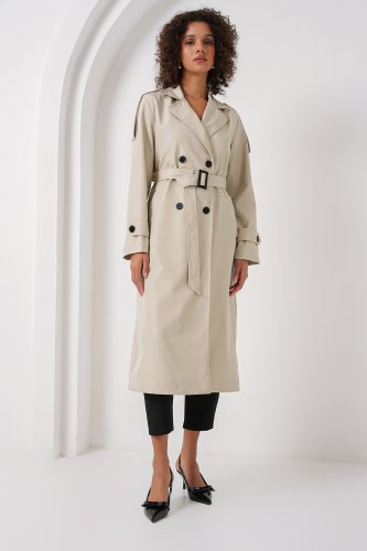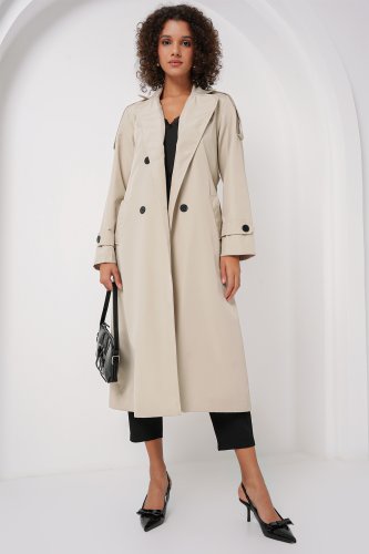 • 5941 Kruvaze Yaka Uzun Trençkot Taş