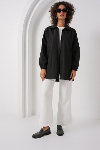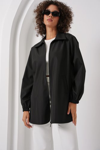 • 5909 Çift Renkli Mevsimlik Trençkot D Siyah