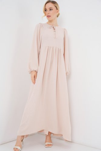 Balon Kol Uzun Tesettür Elbise 2464 Krem