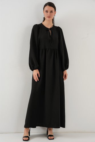 Balon Kol Uzun Tesettür Elbise 2464 Siyah