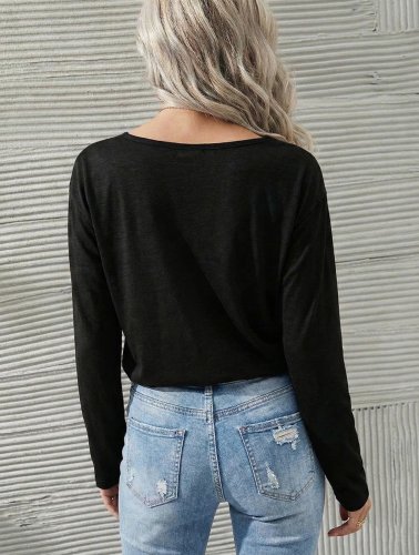 Kadın uzun kollu geniş yuvarlak yaka dantelli viskon iki iplik bluz