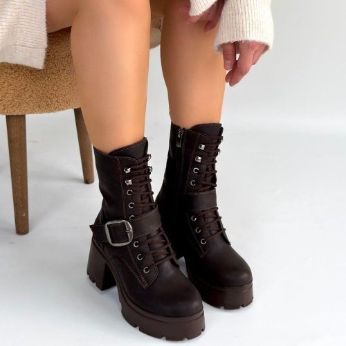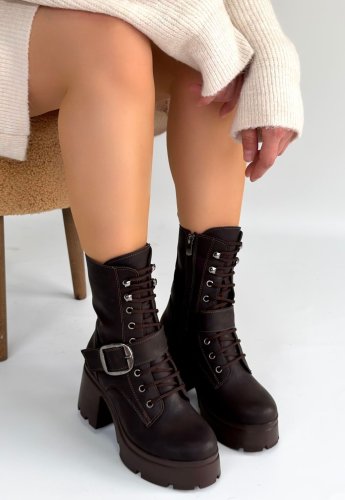 Linma Acı Kahve Cilt Bağcıklı Topuklu Bot