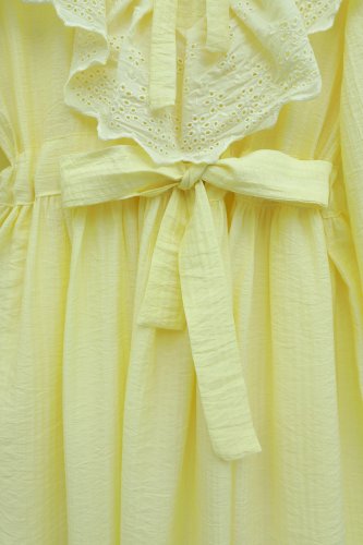 • Yakası Ve Beli Bağlamalı Fistolu Astarlı Krinkıl Elbise Sarı