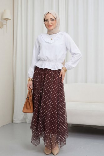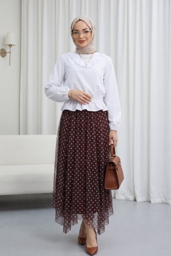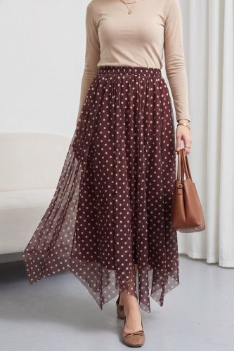 • Beli Lastikli Asimetrik Kesim Parçalı Astarlı Şifon Etek Bordo
