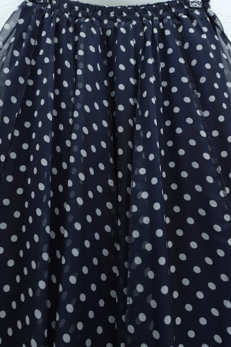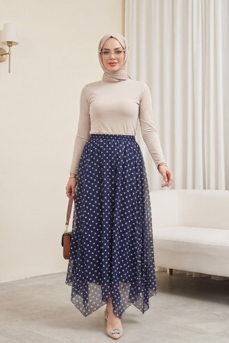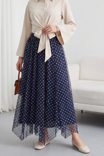 • Beli Lastikli Asimetrik Kesim Parçalı Astarlı Şifon Etek Lacivert