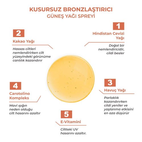 • Sinoz Kusursuz Bronzlaştırıcı Güneş Yağı Spreyi 200 ml Hindistan Cevizi Kakao Havuç Yağı İçeren