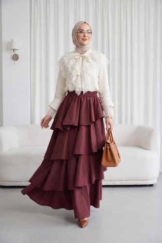 İçten Bağlamalı Tunik Bol Paça Pantolonlu Takım Bordo